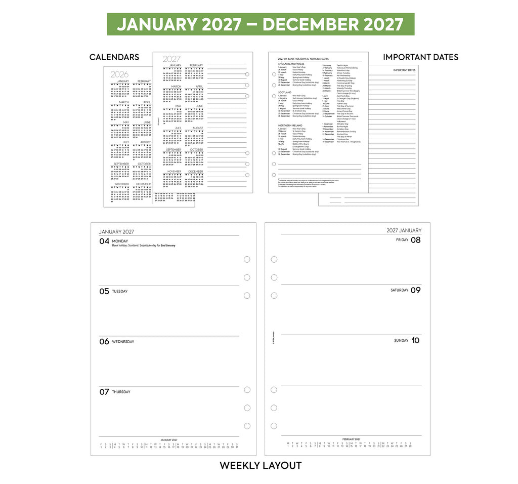 - Week on two pages diary (UK bank holidays): January 2027 – December 2027