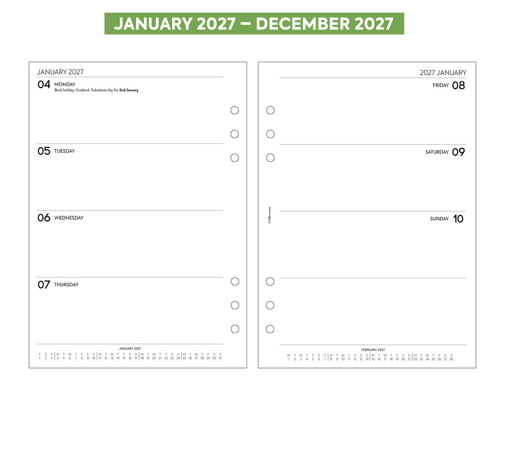 2027 Week on two pages diary organiser refill to fit 6-ring organisers