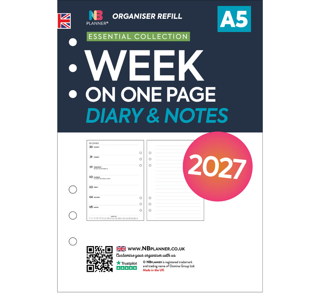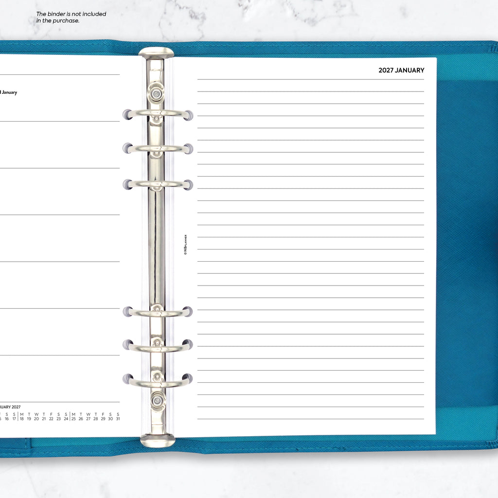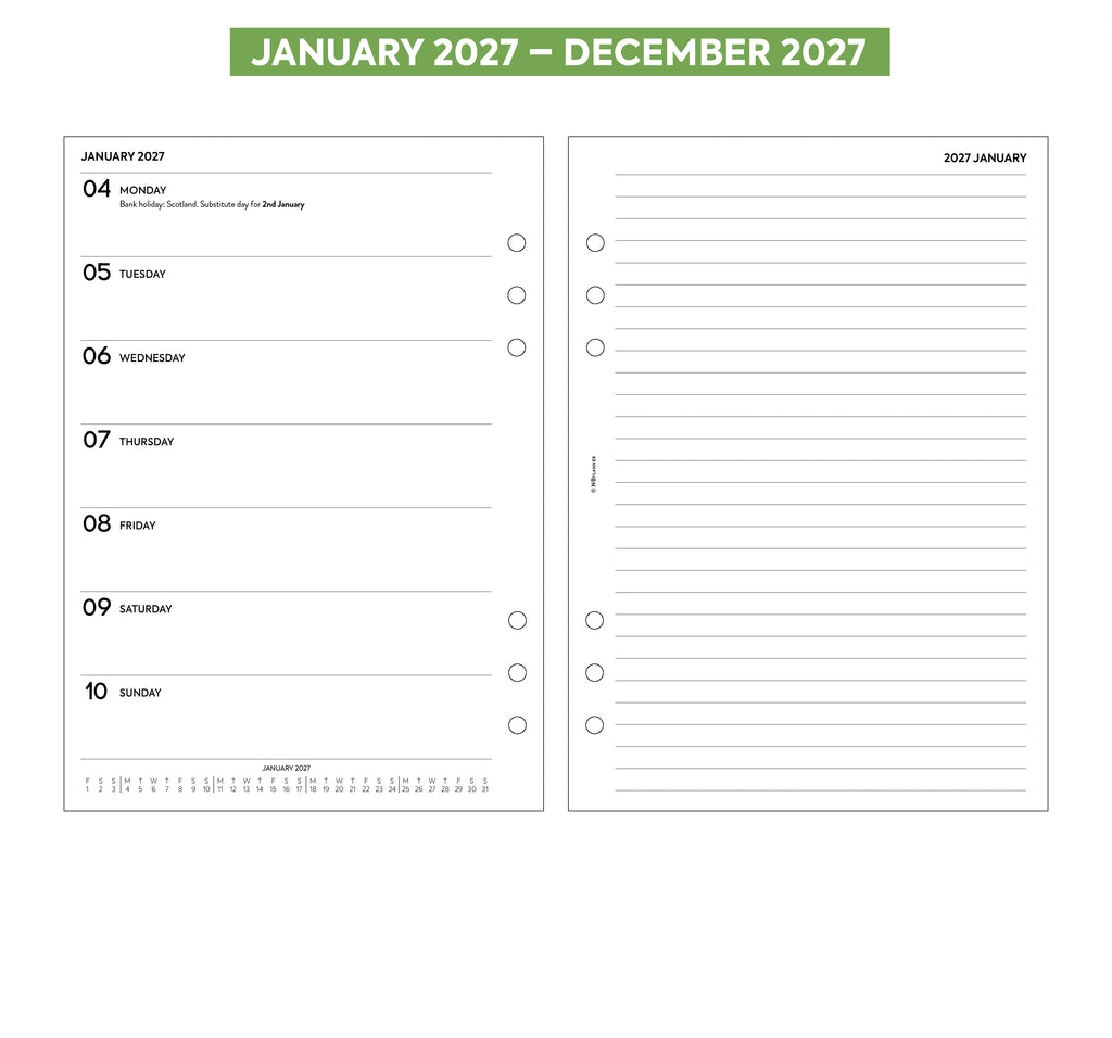 2027 Week on one page diary & lined notes organiser refill to fit 6-ring organisers