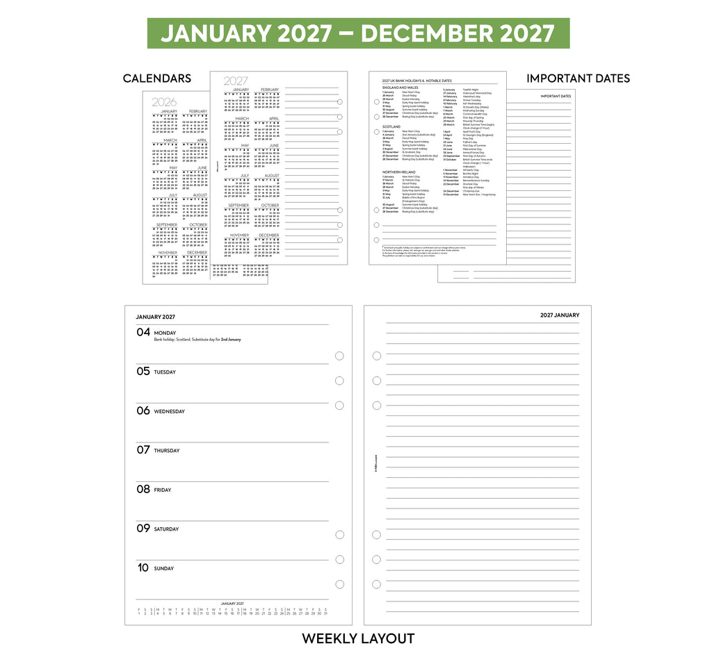 - Week on one page diary & lined notes (UK bank holidays): January 2027 – December 2027